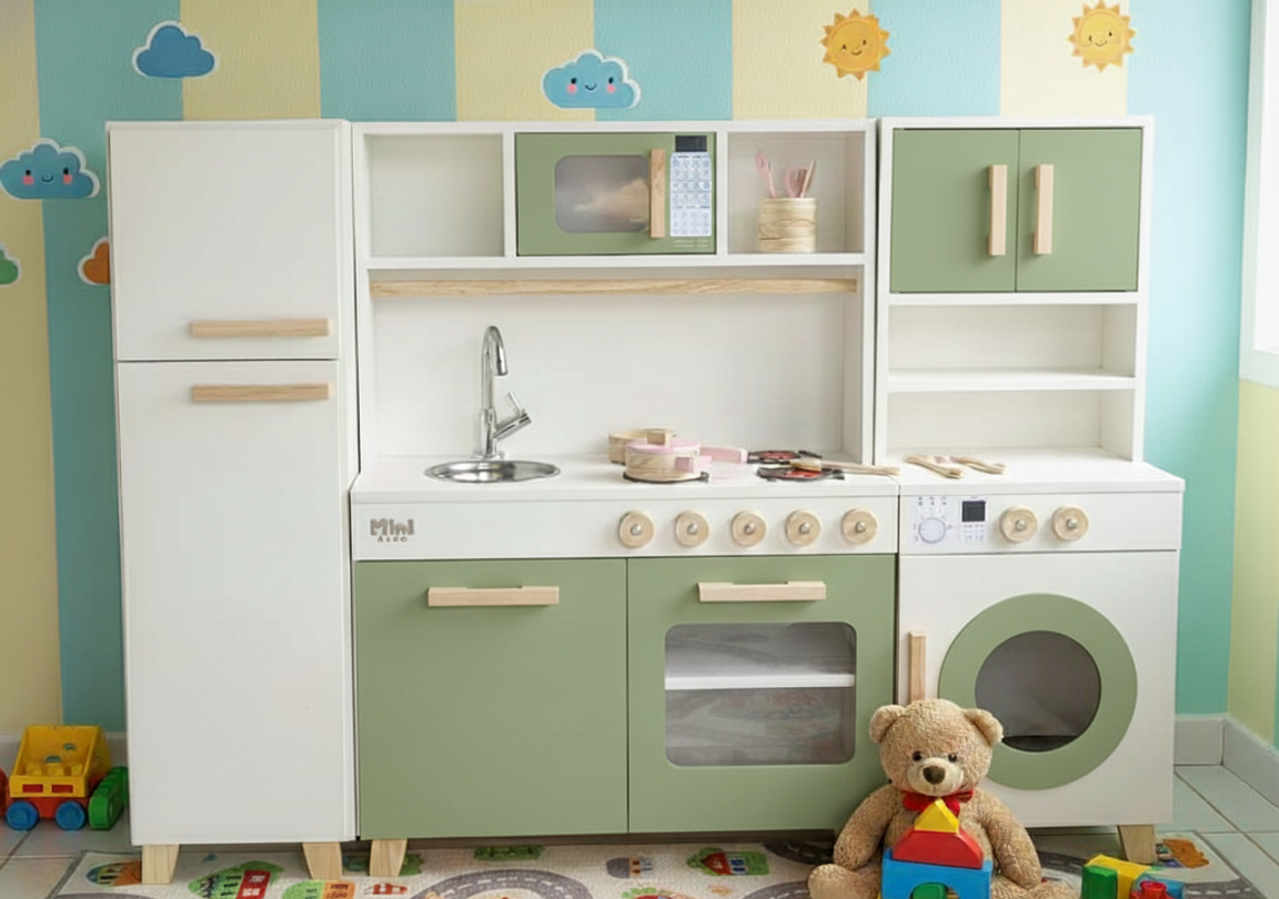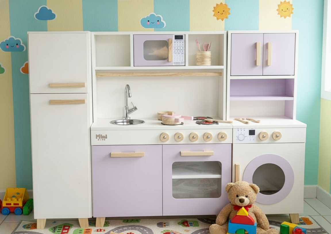 Transforme o brincar em um aprendizado real com nossa Mini Cozinha Completa. Desenvolvida sob os princípios Montessori, ela possui a altura ideal para que a criança explore, crie e aprenda com total independência.